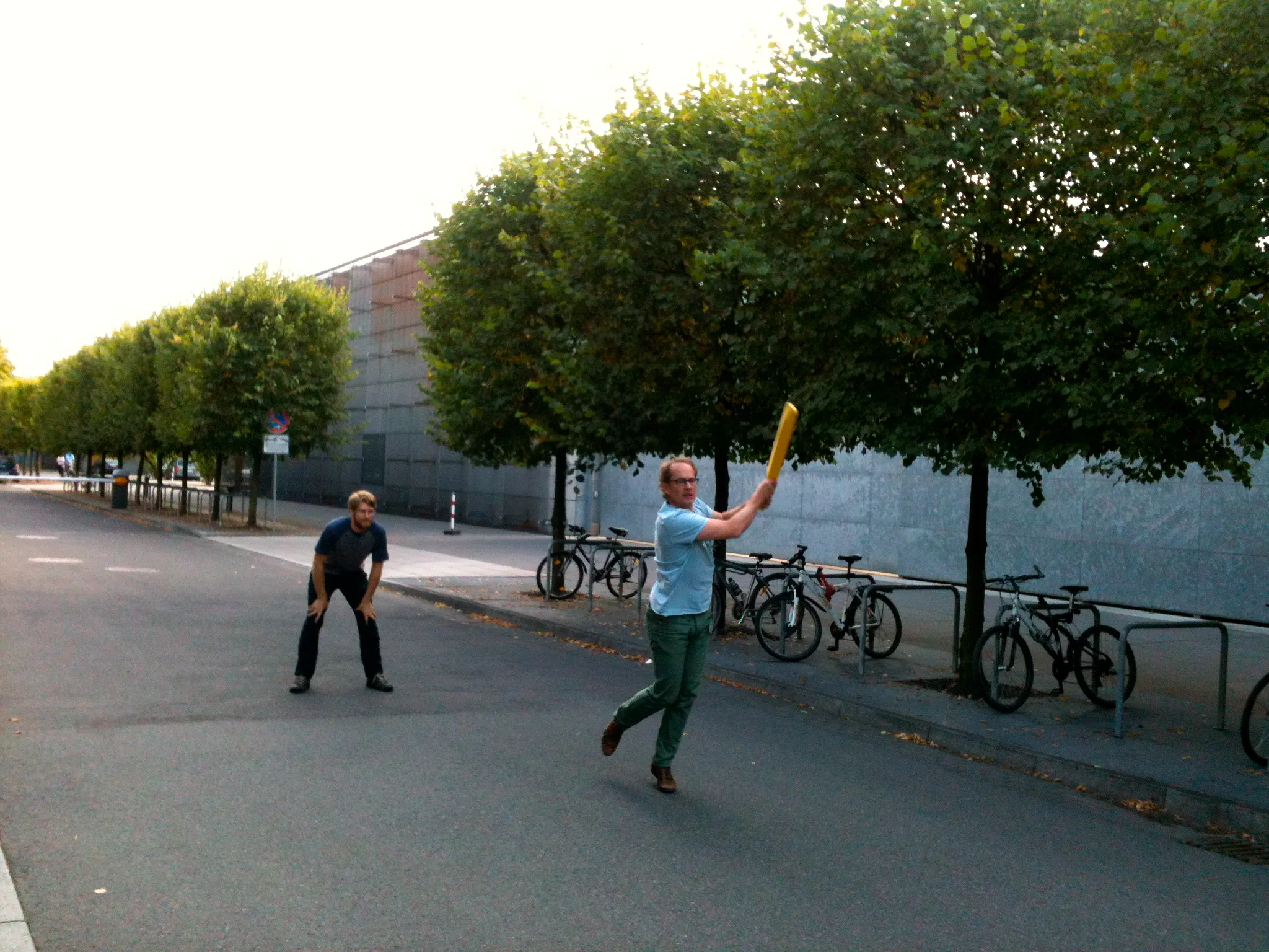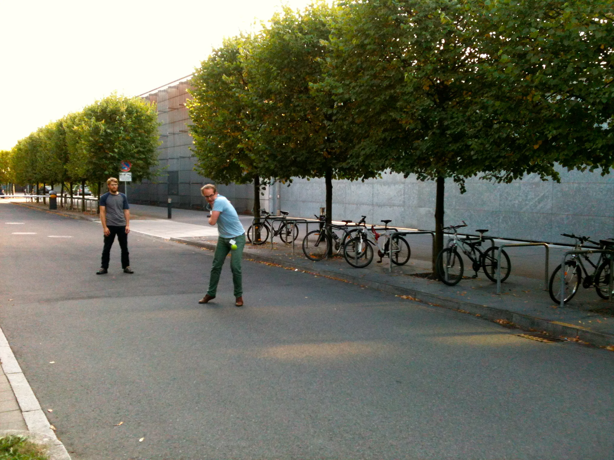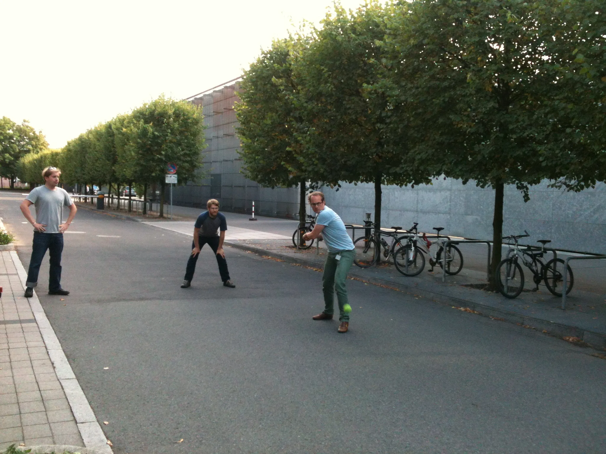 An outbreak of Cricket Fever has hit the Hyman Lab! It all started with a successful weekend lesson & BBQ hosted by Mark, Shamba, and Avinash. Now you can find lab members bowling, batting, and running between the wickets after work, right in front of the MPI. Even Tony has caught the bug, as you can see below. So come join in next time you see us out there bowling a couple of yorkers, because we always need somebody to play at silly-mid-on. Howzat?