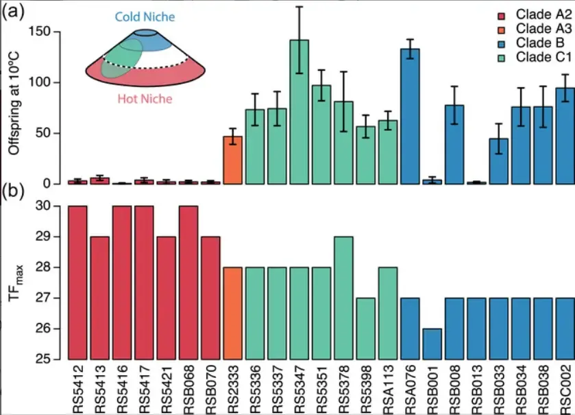 Climate change leads to populations of organisms being exposed to stressful temperatures, but it is not known to what degree organisms adapt to the temperature of their niche. Mark found that the occurrence of high temperature adapted strains decreases with increasing altitude on the volcanic island.